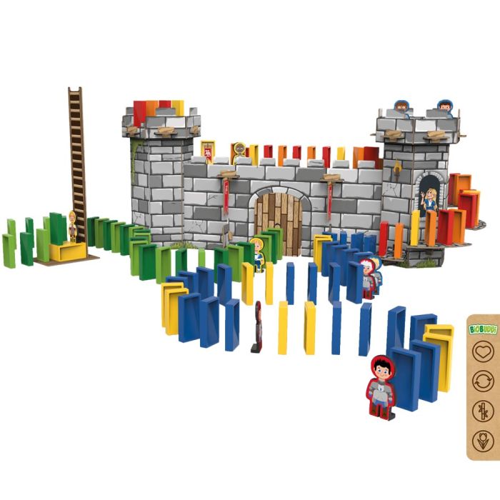Bouw het kasteel, plaats de domino stenen, zet alles klaar en ga! Wow eindeloos bouw- en speelplezier. Wat een uitdaging!