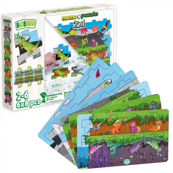 Le premier jeu de puzzle et de mémoire 2-en-1 au monde produit dans le respect de l'environnement ! Avec cet excellent produit, vous pouvez créer un méga puzzle ou 6 puzzles plus petits. En plus des puzzles, vous pouvez également jouer à la mémoire, vous n'avez donc jamais fini de jouer ! Nous avons des thèmes différents, donc quelque chose pour tout le monde ! Ce thème est Dinosaures.