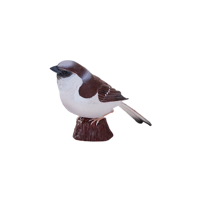 Il s'agit d'une figurine magnifiquement conçue qui capture de manière réaliste les détails distinctifs de ce célèbre oiseau chanteur. Le Moineau domestique est un petit oiseau chanteur brun, de constitution robuste, doté d'un bec court et d'une tache noire distinctive sur la gorge chez les mâles.