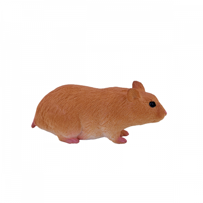 Il s'agit d'une figurine mignonne et réaliste représentant l'un des petits rongeurs les plus populaires. Le hamster est conçu de manière réaliste avec une fourrure douce, de petites oreilles rondes, de jolis yeux perçants et des poches de joues remplies, ce qui est une caractéristique reconnaissable de ces animaux.