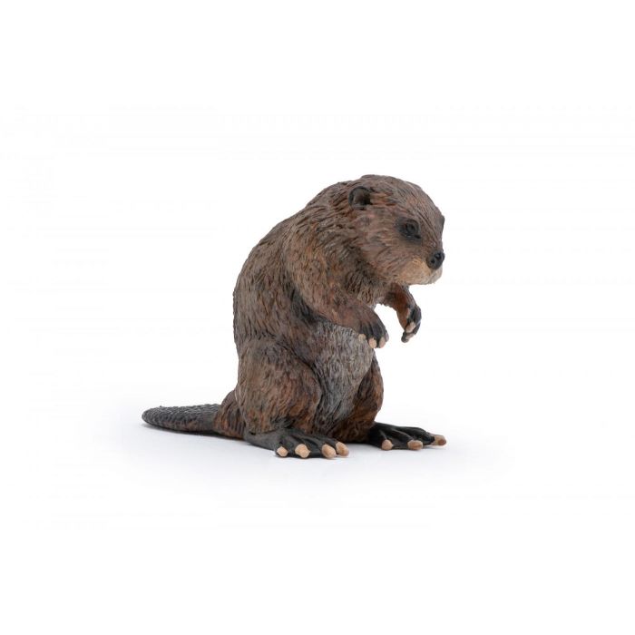Il s'agit d'une figurine réaliste et détaillée d'un castor. La figure montre un castor avec des détails précis, tels qu'une fourrure brun foncé, des pattes courtes et une queue plate.