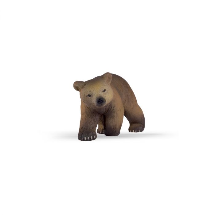 Il s'agit d'une figurine peinte à la main représentant un jeune ours des Pyrénées. L'ourson est représenté avec une fourrure brunâtre et des yeux expressifs, ce qui contribue à une apparence réaliste.