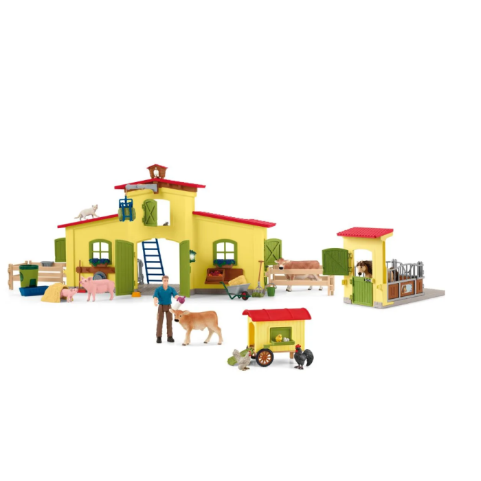 L'ensemble comprend une écurie détaillée, un poulailler et une écurie à poneys, ainsi que divers accessoires illustrant la vie à la ferme. Dans l'écurie, les enfants peuvent s'occuper de leurs poneys et autres animaux de la ferme, tandis que le poulailler est adapté à l'élevage des poules. L'ensemble comprend également un certain nombre d'accessoires de ferme tels que des mangeoires, du foin et un outil de jardinage, afin que les enfants puissent gérer leur propre ferme et simuler les soins aux animaux.