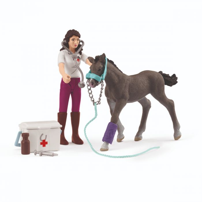 | Contenu | 1x figurine Mme Kramer, 1x poulain trakehner, 1x set de soins, 1x flacon de médicaments, 1x seringue, 1x stéthoscope, 1x bandage adhésif, 1x licol d'écurie |